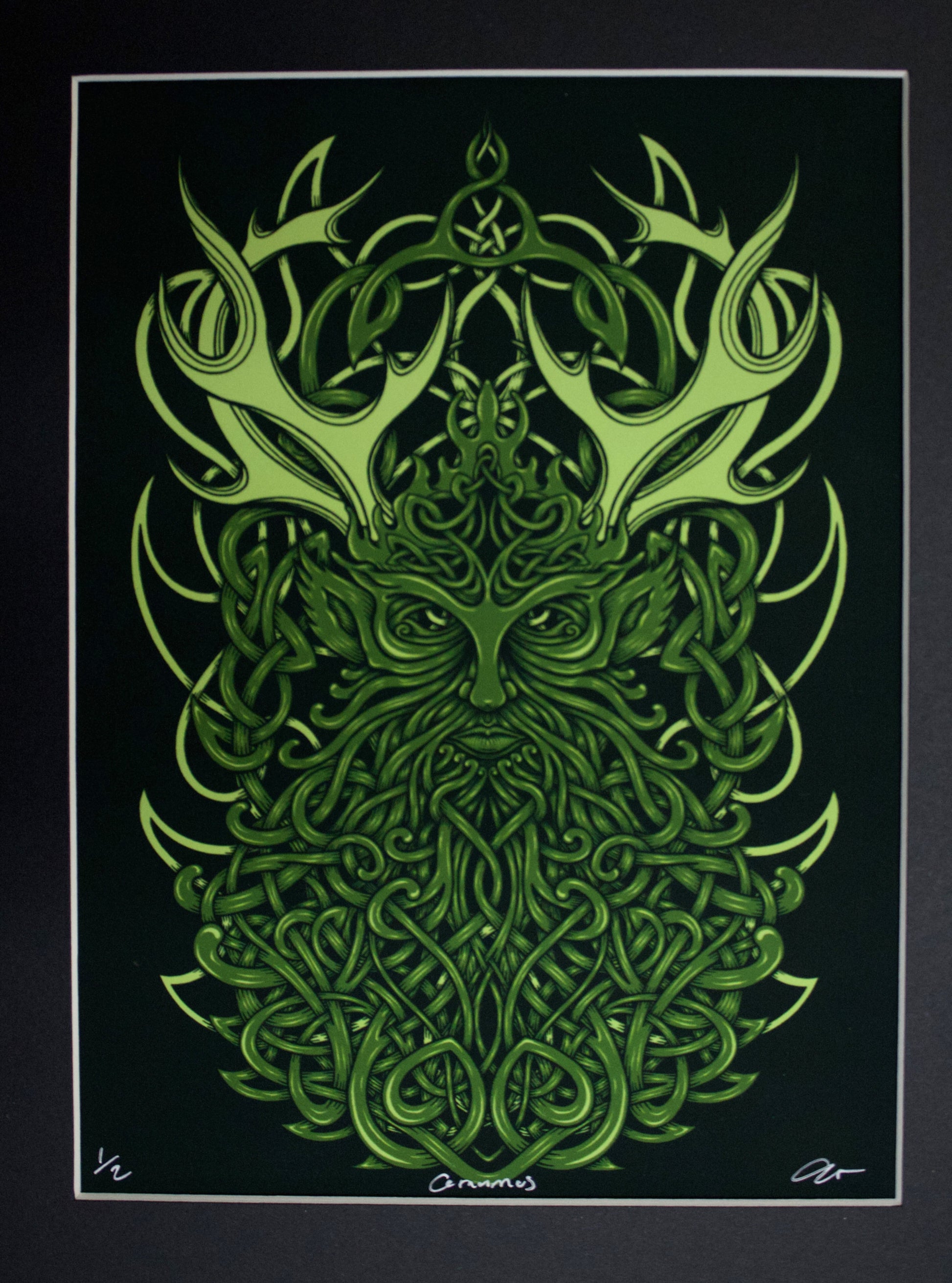 Dabulga Design original art print 'Cernunnos' measuring 20.4cmx25.5cm in black mount.